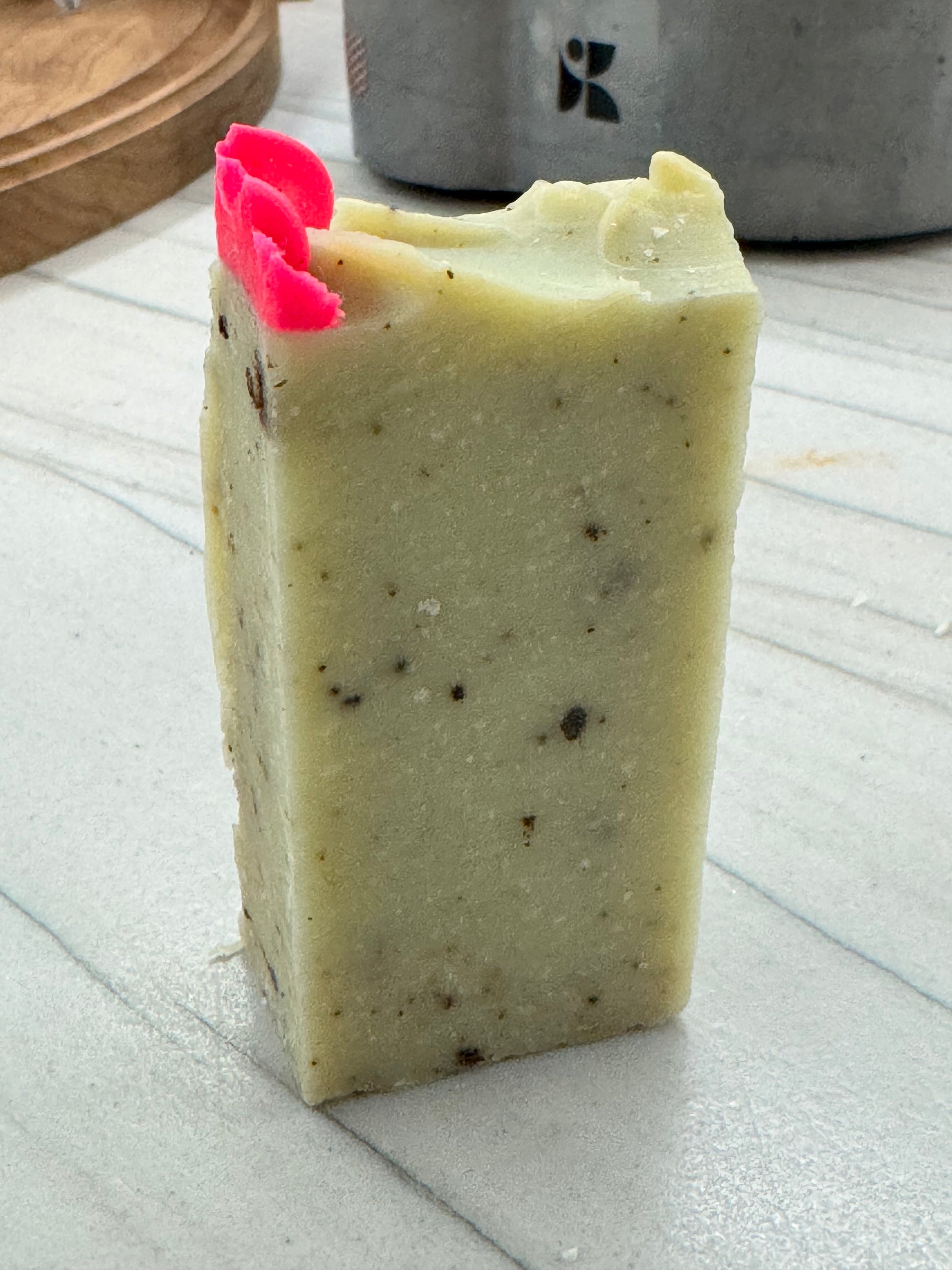 Ingredients: Made with olive oil, lard, shea butter, cocoa butter, white kaolin clay, fragrance oil, and skin safe mica.
